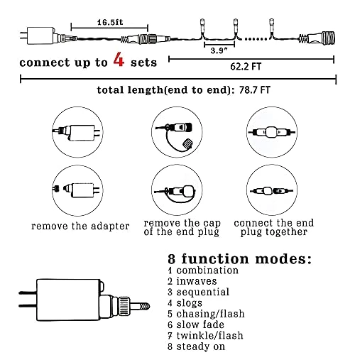 - 8 modes: Funpeny Halloween decorative LED lights with 8 different modes: combination, in wave, sequential, slo glo, chasing/flash, slow fade, twinkle / flash, steady on. Just pressing the button on the transformer to change the lighting mode to fit different occasions’ required.