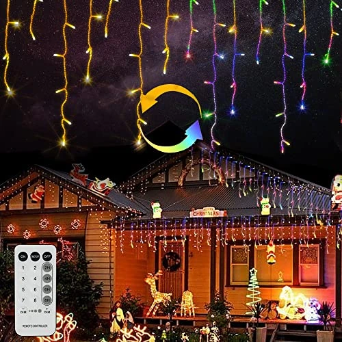 - Remote & Memory Function & Connectable: Each string iciclelight has male and female connector, can connect up to 3 sets end-to-end. (Max 960 LED) Equipped with 40ft barrier free remote control, you can adjust the dim and lighting modes of the light, and turn on/off the light. Memory Function Restore previous setting pattern when restart the outdoor Chrismtas lights.