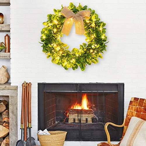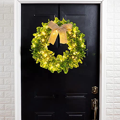 8 reviews for FUNPENY Artificial 16 Inch Spring Summer Wreaths For Front Door, Pre-lit 40 LED Evergreen Leaves Wreath With Lights Decorations Clearance