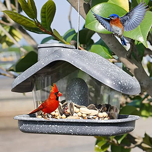 - Transparent plastic design: easy for birds to see the food in the bird feeder and attract more birds to eat.