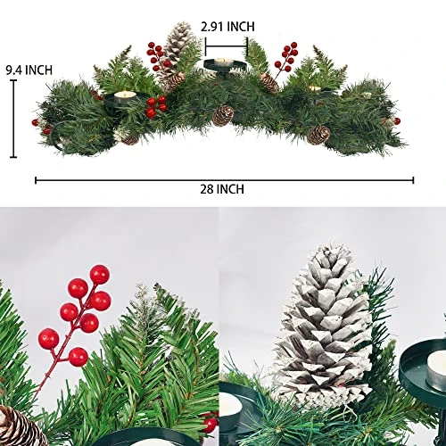 8 reviews for FUNPENY Christmas Centerpiece, Artificial 3 Candle Holders With Red Berries Pine Cone, 28 Inch Candlestick With Steel Base Tabletop Display Table Kitchen Party Christmas Decorations