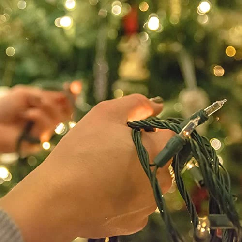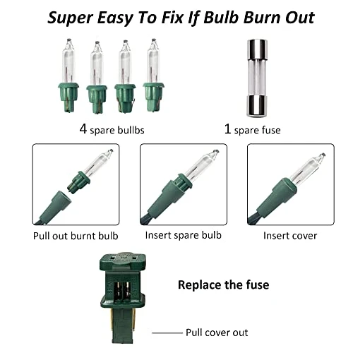 - Package include: 2 x 33 ft string light, 2 x spare fuse, 8 x extra incandescent light bulbs. Christmas mini clear string lighted length is 31 FT, and the leading wire is 2 ft.