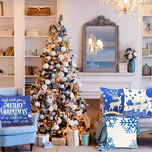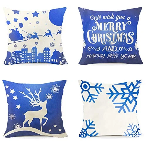 8 reviews for FUNPENY Christmas Pillow Covers, Set Of 4 Blue Christmas Pillow Covers 18 X 18 Inch Snow, Santa Claus, Deer, Christmas Tree Covers For Christmas