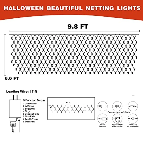8 reviews for FUNPENY Halloween 200 LED Net Lights, 9.8ft X 6.6ft 8 Modes Waterproof Connectable Halloween Decorations For Outdoor Garden Party Decor (Orange)