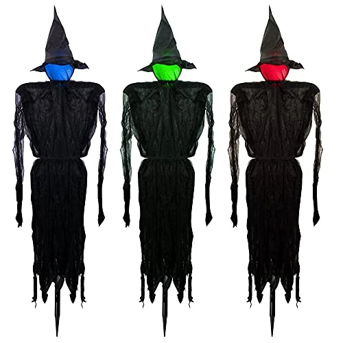 - Lighted Witch Halloween Decoration: The batteries is pre-install. The faceless witch will light on the night and flicker with change colors. Suitable for Halloween party, haunted house, garden, yard, outdoor decoration. Popular with Halloween party favors.
