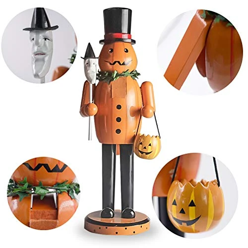 8 reviews for FUNPENY Halloween Decorations Indoor, 14 Inch Wooden Nutcrackers Figures Decor For Table Fireplace Desk, Handmade Pumpkin Man Jack-O-Lantern With Pumpkin Candy Bucket