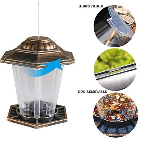 - Easy to clean: The top of the bird feeder can be removed, and the inside of the bird feeder can be easily cleaned with a brush.