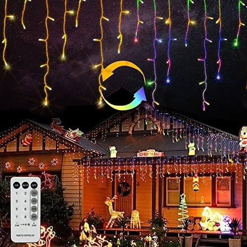 - Low Voltage & Waterproof: Both Christmas icicle lights and transformer are IP 44 waterproof. These outdoor icicle lights have a low output of 29V through a plug-in transformer, is very safety for use. Perfect for outdoor using can withstand rain and snow. It won’t over heat after long time using. Note: Prevent plugs from being submerged in water.