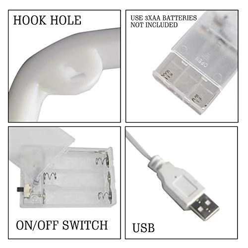 Batteries last several days, nice glow. Wish USB cord was longer though to reach a power supply – should be at least 6 foot long.
